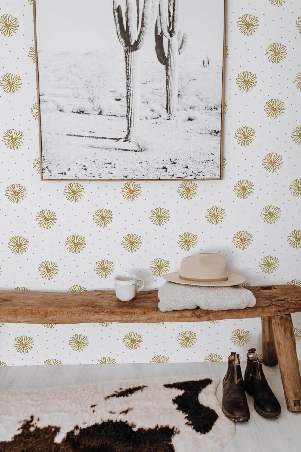 Floral grid wallpaper brings a modern flair to any cafe with its striking black and white check pattern, accented by delicate beige floral motifs. This design effortlessly combines minimalist and artistic elements, making it a versatile choice that can transform any space with its contemporary charm. Whether you’re creating a cozy atmosphere in a cafe or adding a touch of elegance to a living room, Floral grid wallpaper is sure to inspire and delight. Available in two options, our peel and stick version is easy to apply, self-adhesive, and removable, while the non-pasted version offers a traditional application process with glue. Embrace the joy of nature-inspired décor with this innovative design, crafted by our dedicated, global team to bring beauty and life to homes worldwide.