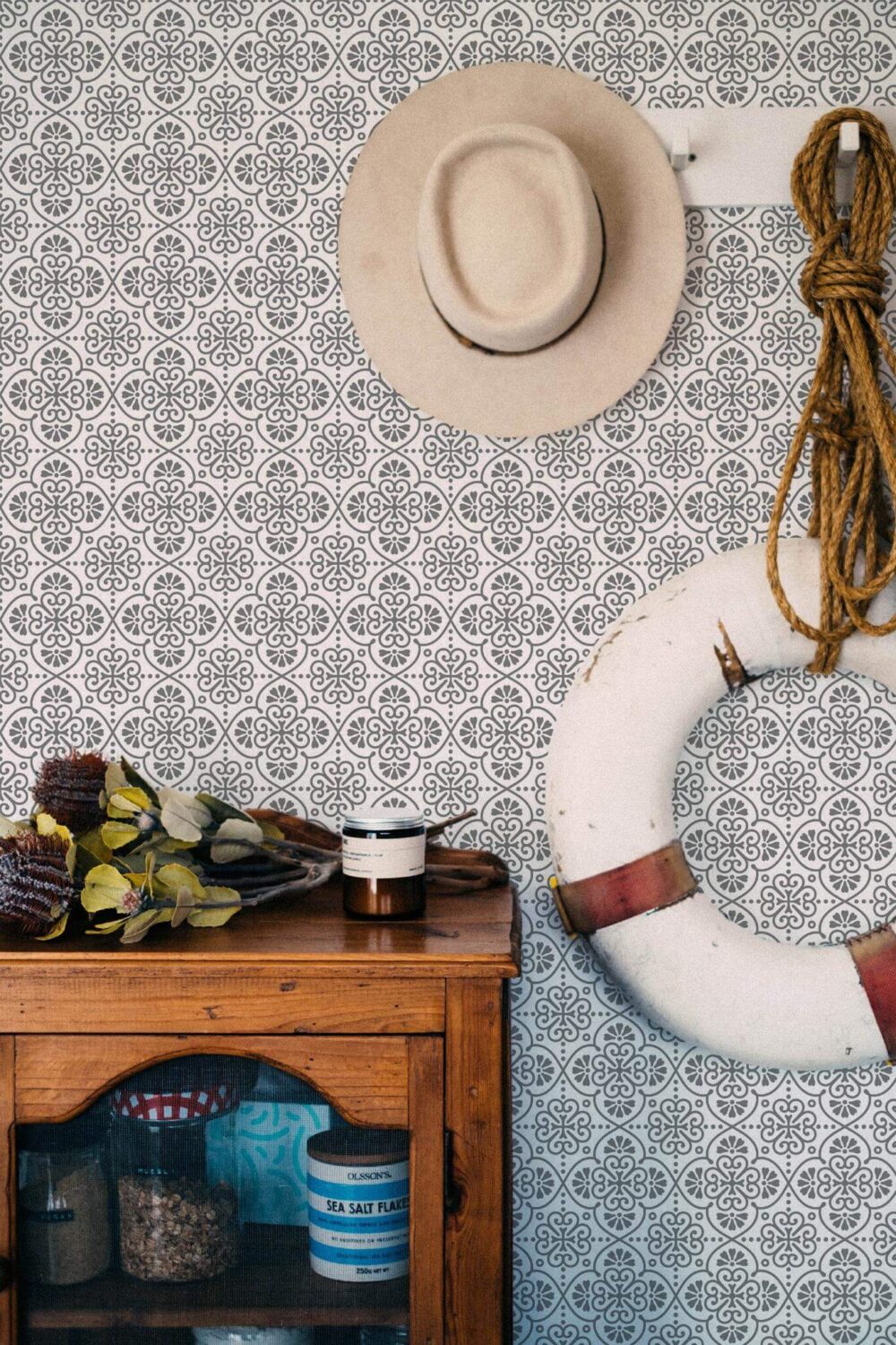 Floral mandala wallpaper brings a touch of Moroccan elegance to your space with its intricate taupe floral patterns set against a crisp white backdrop. Perfect for a yoga room, this calming and meditative design transforms any area into a serene sanctuary, inviting tranquility and style into your home. Whether adorning a living room or bedroom, the Floral mandala wallpaper’s ornate and harmonious geometry adds a sophisticated flair to your interiors. Available in both peel and stick, which is easy to apply and remove, or traditional non-pasted options, this wallpaper offers flexibility for your decorating needs. The original Taupe can be replaced with any of our standard shades or a custom color of your choice, allowing you to truly personalize your space with this beautiful, PVC-free décor that celebrates the joy and inspiration of nature.
