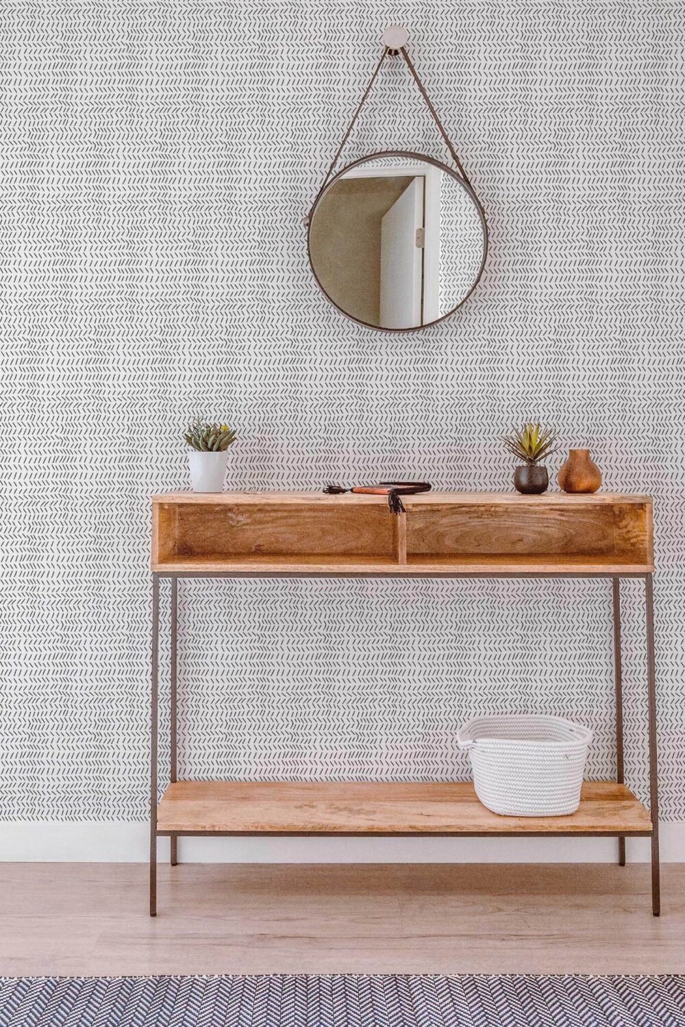 Abstract herringbone wallpaper brings a captivating boho style to your hallway with its dynamic black and white chevron pattern. This bold and graphic design creates a striking, modern contrast that can enliven any space, from living rooms to bedrooms, beyond its recommended hallway setting. The hand-drawn effect adds a textured, edgy charm, perfect for those seeking a rugged yet stylish touch. Abstract herringbone is available in two options: the easy-to-apply peel and stick (self-adhesive and removable, requiring no glue) and the traditional non-pasted version for a more permanent application. Plus, you can infuse your personal style as the original black and white can be replaced with any of our standard shades or a custom color of your choice. Embrace the joy of transforming your home with.