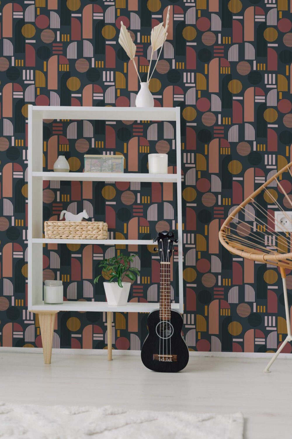 Light boho arch wallpaper brings a chic and elegant boho style to your powder room with its harmonious blend of geometric arches and circles in blush and teal on a soft pink backdrop. This pastel aesthetic creates a sophisticated and modern tapestry, making it a stylish choice that can enhance any space, not just your powder room. Perfect for those who love bold and retro designs, the Light boho arch wallpaper adds a touch of timeless elegance to your interiors. Choose between two options: the easy-to-apply peel and stick version (self-adhesive and removable) or the traditional non-pasted version, allowing you the flexibility to transform your walls effortlessly. Let this design inspire you to bring color and joy into your home with our innovative, PVC-free wall décor solutions.