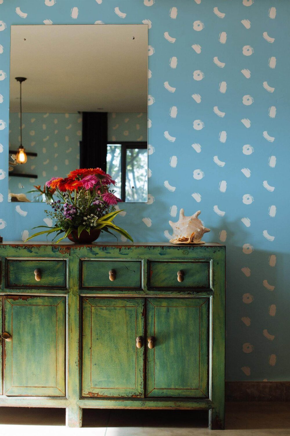 Minimalist floral wallpaper seamlessly infuses the gentle beauty of blue and white brush stroke patterns into any nursery, creating a calming and airy haven for little ones. Playful white brush stroke floral motifs dance across a serene blue backdrop, offering a fresh and delicate touch to interiors, making it suitable for any room in need of a soft, calming ambiance. This delightful design is available in both peel and stick, which is easy to apply and removable, and non-pasted options for a more traditional application. With the possibility to customize colors, the original Blue and white can be replaced with any of our standard shades or a custom color of your choice. Whether you’re enhancing a nursery or any other space, Minimalist floral wallpaper brings a playful and soft elegance, inspired by nature, to life. Our team is dedicated to providing innovative, PVC-free wall décor that transforms homes worldwide.